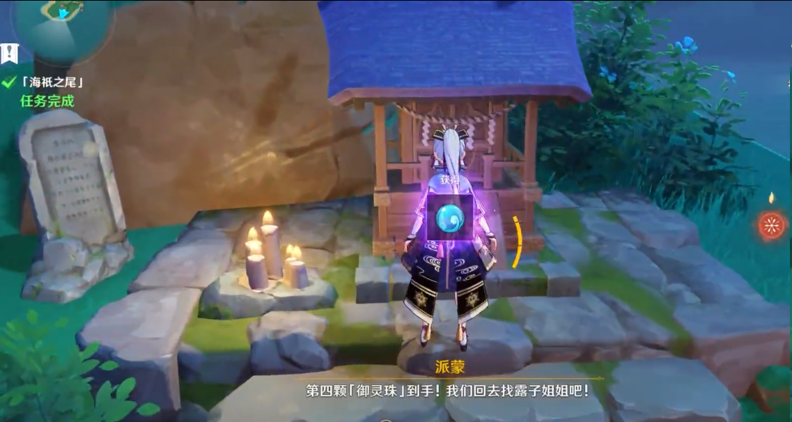 打完愚人众,终于可以去神龛拿御灵珠了。这是最后一枚御灵珠,拿到它任务就算完成。整个过程要注意保持雷种子状态,不然没法点亮石柱。如果中途失败了也别慌,重新拿雷种子再来一次就行。这个任务最麻烦的就是找对点亮顺序,解谜过程中可能会遇到愚人众干扰,提前准备好战斗阵容会轻松很多。任务本身不算难,主要是步骤有点多,跟着指引一步步来准没错。最后海祗之尾是月浴之渊系列任务的一部分,想接这个任务得先完成前置的四个任务。做完这个就能去露子那里接海祗之心的任务了,继续探索稻妻的精彩故事。