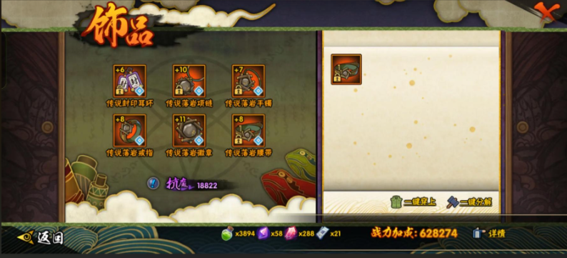 饰品和忍具是短期快速提战的有效手段。饰品优先选择暴击暴击攻击属性,通过洗练优化附加属性。忍具需凑齐套装激活额外效果,修罗难度副本掉落的究级忍具是当前版本最优选。强化时使用保护符和祝福券确保成功率,避免资源浪费。组织商店每日兑换秘术之尘和轮回石,持续积累强化材料。
