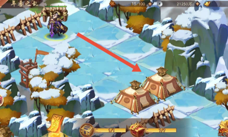 第五关炽雪城的目标是突破防线,破坏城门。开局后玩家手持大刀,