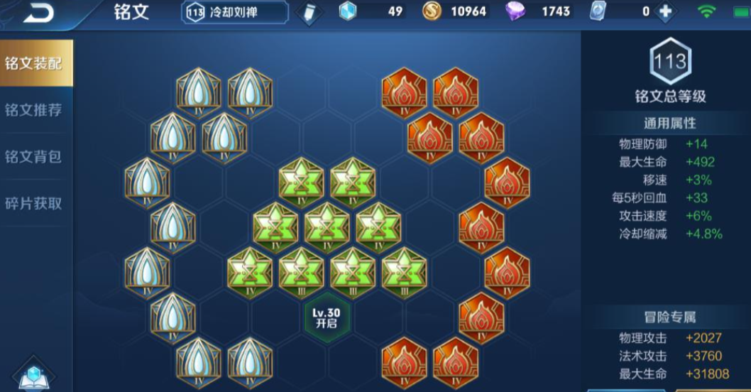 铭文方面需要与这种半肉输出的定位相匹配。通常推荐以增加生命值、物理防御和冷却缩减的属性为主。一套常见的搭配是10个宿命、10个虚空和10个调和,这会为刘禅提供大量的最大生命值、物理防御以及每5秒回血,确保前期的线上续航和坦度。虚空铭文提供的冷却缩减也能让技能转得更快。如果想进一步强化支援和攻击力,也可以将部分铭文替换为隐匿,以获得物理攻击和移速加成。铭文的选择核心就是为出破军的刘禅打下扎实的生存基础,让他有资本在团战中站住脚并打出那一下关键伤害。